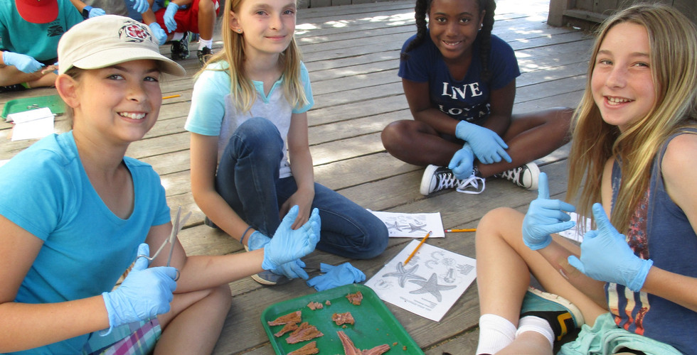 During Marine Science Camp, dissections are available for summer campers who are more experienced and want to dive a little deeper into understanding the body systems of marine animals. In summer 2016, Naturalist campers (grades 4-5) and Underwater Investigators (grades 6-8) dissected preserved sea stars. The learning objective of this activity was to identify major organs and systems, and their functions. The discussion of physiology on a broader scale within Echinodermata (the phylum containing sea stars) facilitates a greater understanding of how these animals survive in marine habitats, and their relation to other well-known echinoderms, such as sea urchins, sand dollars and sea cucumbers. Not only does this dissection enable students to understand the anatomy and physiology of an animal they are familiar with, but it also illustrates how the animal evolved and filled a particular niche in the ecosystem.